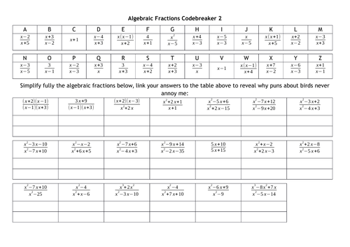 Algebraic Fractions Codebreakers Teaching Resources