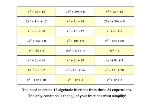 Simplifying Algebraic Fractions Teaching Resources
